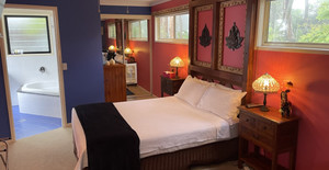 Fantastic views, tranquil surroundings…….At our Tamborine Mountain Accommodation. At our Tamborine Mountain accommodation you will find the perfect Tamborine Mountain B & B with five beautifully themed and decorated spa suites,all with their own private balconies where one can enjoy the great mountaintop views of perfect sunsets to the west and magical misty mornings from the west,east and north and when the mist subsides you will see a beautiful clear day at our Tamborine Mountain accommodation with fantastic views all the way to the Brisbane skyline and it is even possible to see the Glasshouse Mountains on the Sunshine Coast in the distance.
